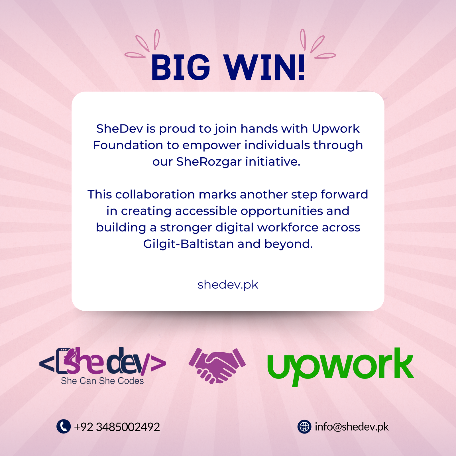 We are proud to announce an exciting milestone in our journey toward digital inclusion and women’s empowerment: SheDev has been awarded a grant by the Upwork Foundation in 2025 to expand SheRozgar Program. This significant support reflects global recognition of our commitment to empowering the women and youth of Gilgit-Baltistan and enabling them to access meaningful opportunities in the digital economy.